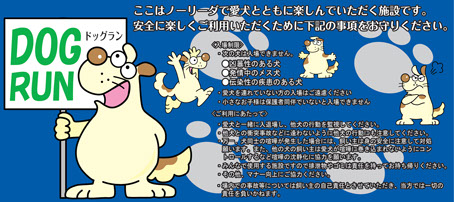 イラストと文章で施設の使用注意や利用条件をわかりやすくした案内サイン