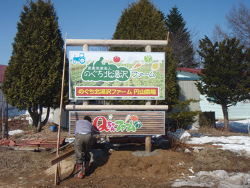 写真と変わった形のピクトグラムでインパクトを与える案内サイン